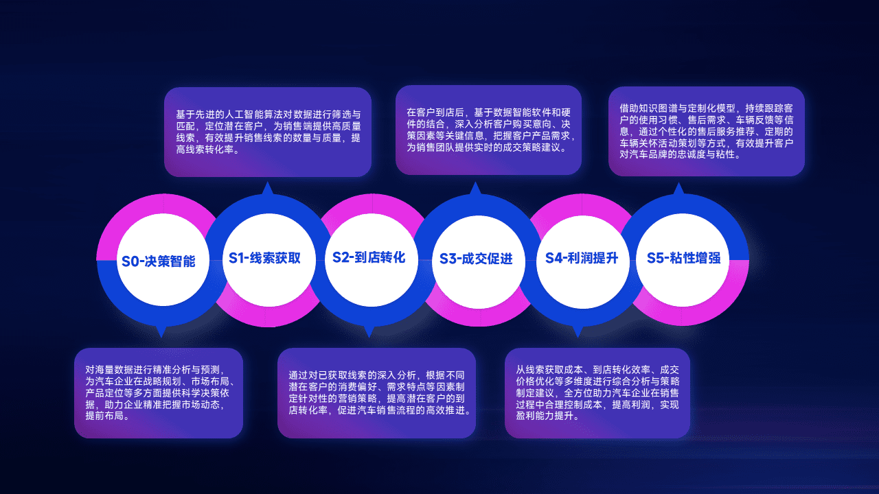 通过拓宽潜在客户来源、、、、优化线索分配并提高到店转化率,,,以增强销售效率。。同时,,,利用线索数据不断优化分析模型,,,,有效提升转化率,,,,扩大营销影响力。。