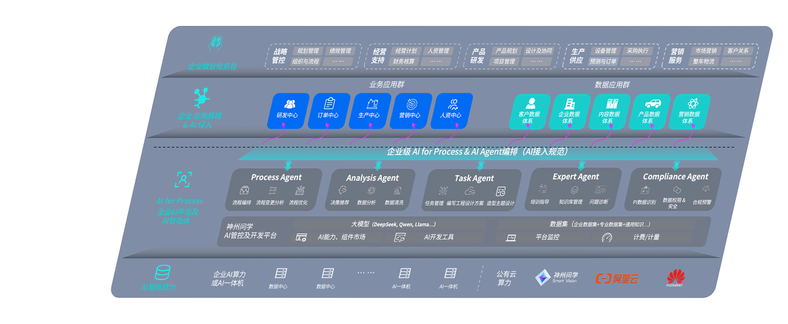 君临国际问学智车解决方案是一套基于AI技术的汽车行业智能化系统,,覆盖从底层算力到顶层AI应用的全栈方案。。方案由算力层、、、、模型层和应用层组成:算力层,,方案支持多种一体机配置,,具备云端灵活部署、、多云适配以及动态优化计算资源的能力;模型层,,,,君临国际问学平台版提供了企业级AI应用一站式构建与管理平台,,,支持基于后训练强化技术的汽车企业专属模型的训练、、、评测和运营;应用层,,,君临国际问学DeepSeek版提供包括超级员工、、智能招采、、、、智能营销、、智能客服、、AI for BI等一系列解决方案,,可助力汽车行业实现数字化转型,,,让管理更智能、、响应更敏捷。。。